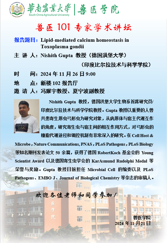 115周年校庆“学术华农”系列活动之0452:Lipid-mediated calcium homeostasis inToxoplasma gondii