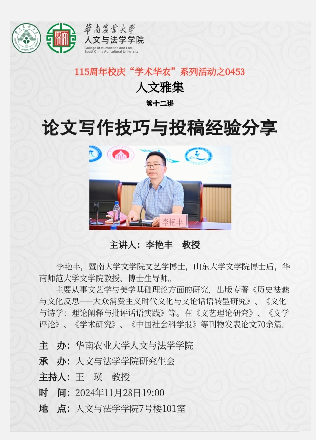 115周年校庆“学术华农”系列活动之0453:【人文雅集 】论文写作技巧与投稿经验分享