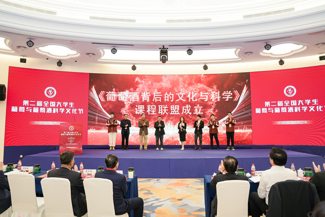 在开幕式上,举行了高校《葡萄酒背后的文化与科学》课程联盟成立仪式。本课程是由北京大学倡议,西北农林科技大学、上海交通大学、中国农业大学、华南农业大学、宁夏大学、山东农业大学以及新疆农业大学等全国8所高校共同发起开设的面向本科生的通识教育课,旨在向大学生普及葡萄酒科学文化知识,提高学生对葡萄酒的鉴赏能力,使其对葡萄酒以及我国葡萄酒产业产生较为全面的理解,为我国葡萄和葡萄酒产业的发展培养多学科的后备人才。