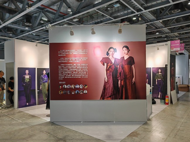 本次博览会汇聚近百位艺术家,学校艺术学院金憓教授团队展厅以非遗香云纱创新设计为核心,将传统工艺与现代时尚结合,使其焕发新生。林汉聪老师指导的学生作品《多巴胺小屋》《壹笼点心》《幻新》和《宇宙的回响——飞天梦》也在博览会中展出,体现了学生的独到艺术观点和高质审美素养。