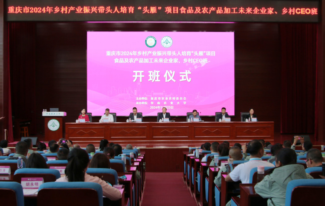 11月23日上午,重庆市2024年乡村产业振兴带头人培育“头雁”项目食品及农产品加工未来企业家、乡村CEO班在我校开班。学校党委副书记丁红星出席开班仪式。