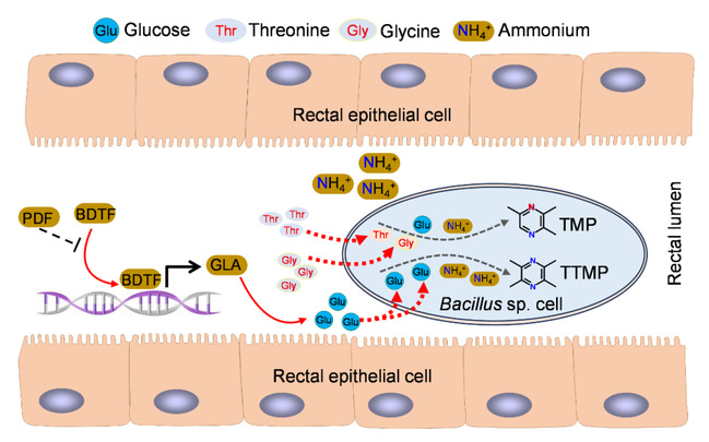 在自然界中,昆虫与肠道菌群之间存在复杂的共生关系,这种关系不仅影响宿主的营养代谢和免疫防御,还在行为调控和信息传递中扮演重要角色。此前研究表明,某些昆虫的肠道微生物能够直接或间接参与性信息素的合成,从而影响交配行为。然而,这些微生物合成性信息素的功能是否可以被宿主精准调控,以及具体的分子机制尚不清楚。