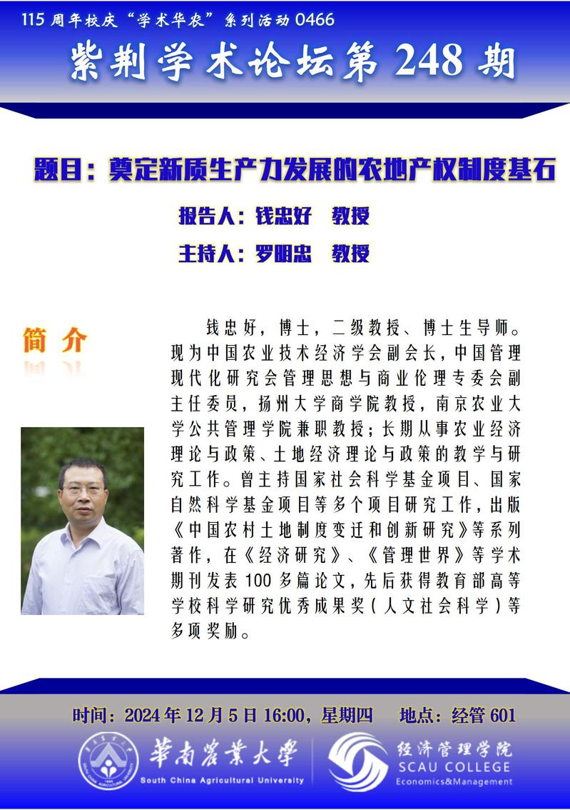115周年校庆“学术华农”系列活动之0466:紫荆学术论坛第248期