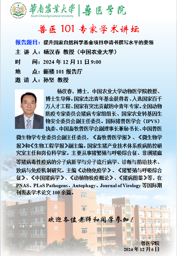 兽医101著名专家学术讲坛:撰写基金项目申请书的体会