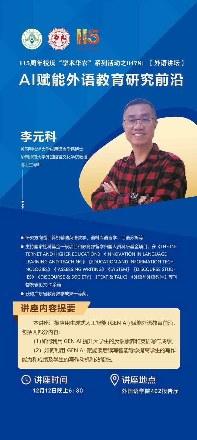 115周年校庆“学术华农”系列活动之0478:【外语讲坛】 AI赋能外语教育研究前沿