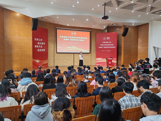 12月7日上午,华南农业大学首届本科生荣誉班级“永根班”创建申报现场展评活动在启林南思政体验馆一楼报告厅举行,全校22个班集体进入创建申报现场展评环节。学校党委副书记丁红星出席活动并讲话。各学院及有关职能部门负责人担任评委。