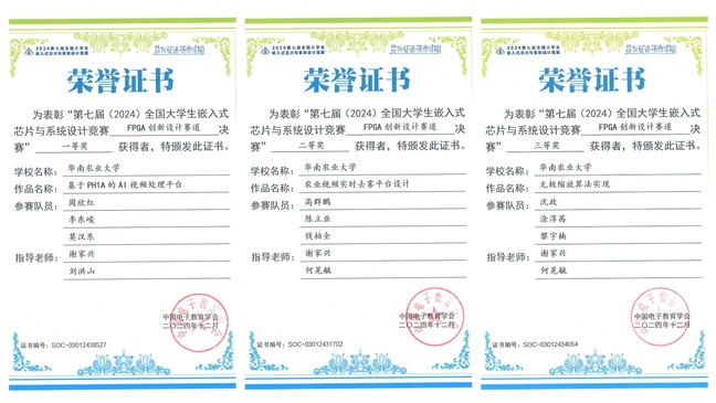 全国大学生嵌入式芯片与系统设计竞赛——FPGA创新设计赛道荣誉证书