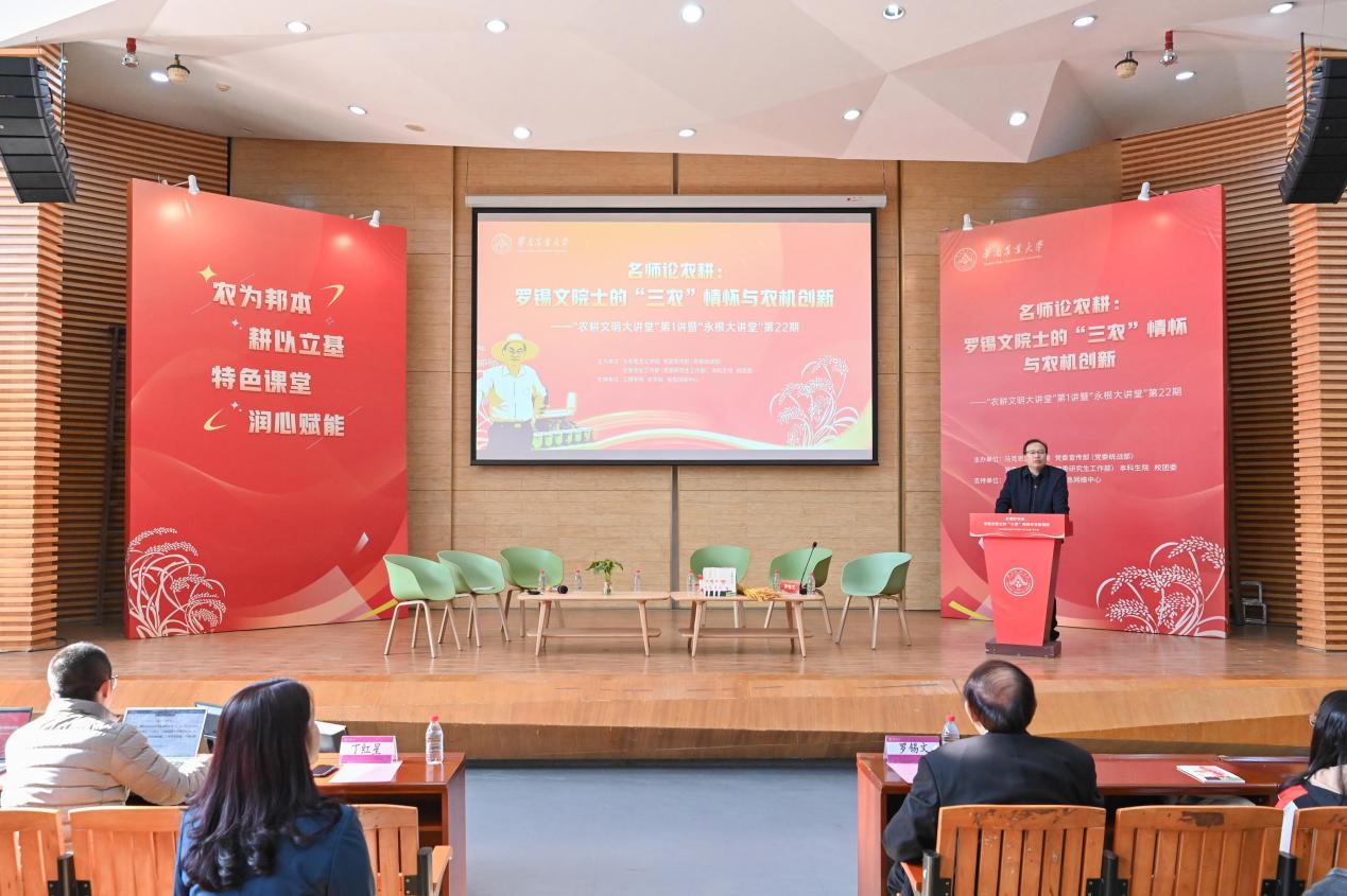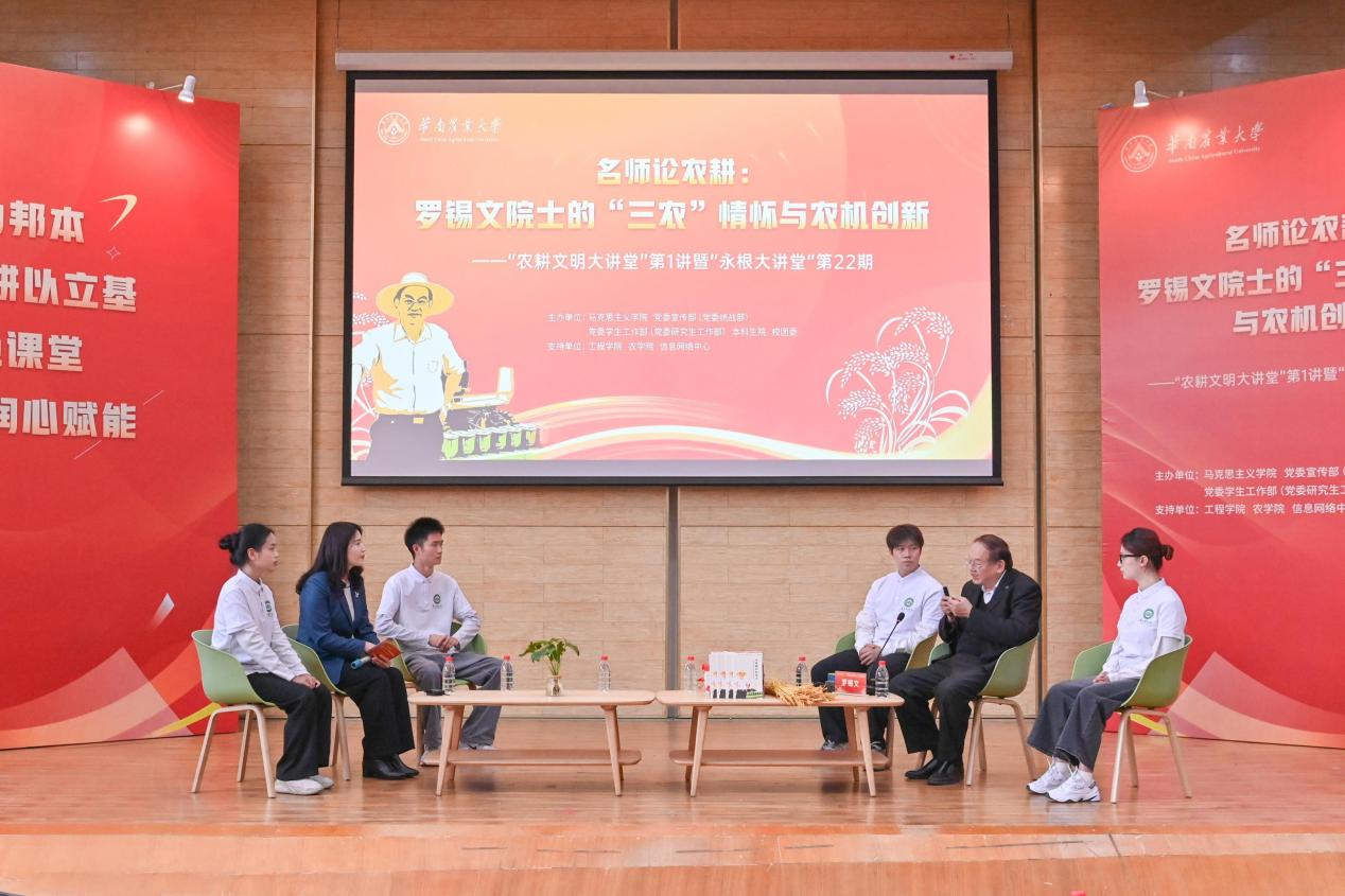校党委副书记丁红星在致辞中表示,“农耕文明大讲堂”是学校整合学科优势和农耕文化资源,将“思政小课堂”与“社会大课堂”相结合,将“大咖讲”与“青年行”相结合,创新思政课建设、深化农业教育、传承农耕文化的重要举措。学校接下来将致力于打造高水平、有吸引力、有影响力的思政课堂,坚持“农为邦本 耕以立基 特色课堂 润心赋能”的理念,不断发掘身边的思政元素,充分用好华南农业博物馆、水稻机械化博物馆、科技小院、水稻栽培实践基地等育人资源,发挥好罗院士为代表的校内“大先生”榜样作用,推动思政课建设内涵式发展,让同学们在实践中学习和体验农耕文化、厚植耕读情怀、树立强农担当,努力成长为具有过硬本领和家国情怀的高素质农业人才。