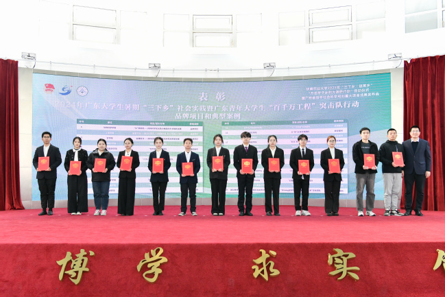 会上对2024年大调研行动获奖代表进行了表彰。动物科学学院《“牛”转新机——饲料科学优化助力梅南肉牛养殖新发展》等3个项目获评2024年广东青年大学生“百千万工程”突击队行动品牌项目,植物保护学院“美美与共”实践团队等24个团队实践事迹入选“百千万工程”突击队典型案例;农学院等7个单位获评华南农业大学“万名学子乡村大调研行动”优秀组织单位、李婷婷等270名师生获“优秀个人”。