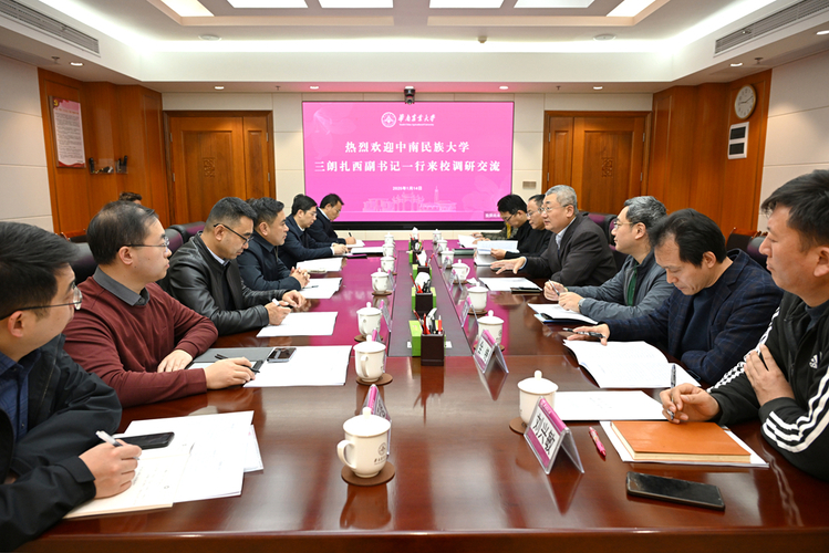 三朗扎西对我校的热情接待表示感谢。相关负责人介绍了中南民族大学学校建设整体概况、学科建设情况以及发展战略规划等相关举措。