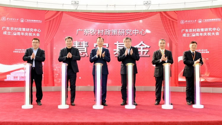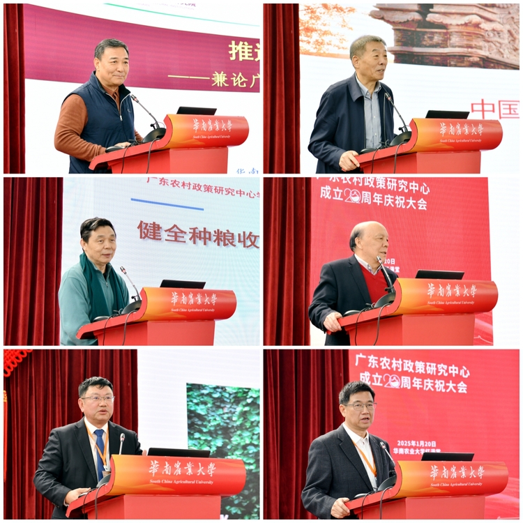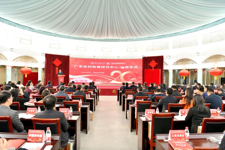 1月20日,作为广东省首个省级“三农”研究智库,广东农村政策研究中心(下称“中心”)在华南农业大学红满堂报告厅举行成立20周年庆祝大会。大会回顾了中心20年来砥砺奋进的发展历程,并围绕“智推乡村振兴和‘百千万工程’高质量发展”主题,聚焦农村改革发展中的热点难点问题,举行系列高端学术报告。来自省农业农村厅、省社科联,以及华南农业大学、中国人民大学、中国农业大学、浙江大学、中山大学、暨南大学、华南理工大学、江西财经大学等高校的知名专家和企业代表齐聚一堂,共同见证中心里程碑时刻,共绘乡村振兴美好蓝图。