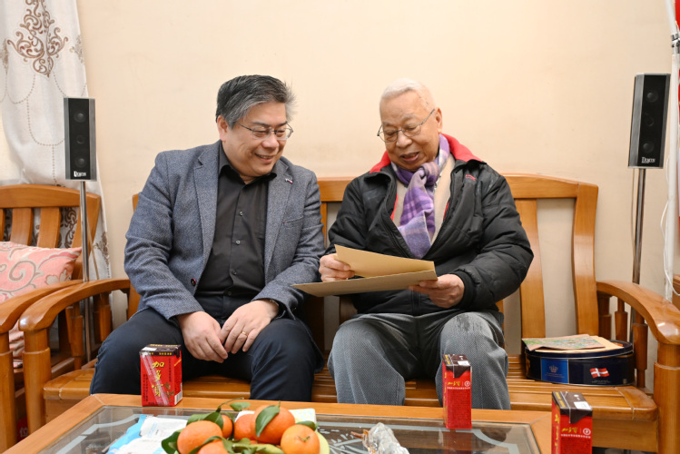 丁红星、杨运东、蒋育燕、钟强、陈乐天分别看望慰问了徐雪宾、陈平、陈北光、陈昌盛、王浩、陈志强、梁深洪、钟仰进、胡浩民、吴鸿、咸春龙、姚方等老教授、老领导、老同志,代表学校向他们送上新春祝福。