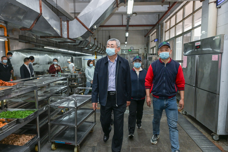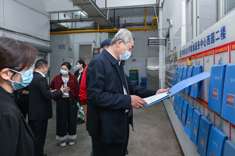 检查组一行对饮食中心下属西园食堂等各食堂和竹园餐厅等校内餐饮经营场所进行了实地检查,仔细查看制度台账、环境卫生、仓库储存、现场操作、工用具分类使用、食品制售、食品留样、“明厨亮灶”监控视频以及消防器材设置等,重点核查了原材料索证索票、场所消毒记录以及食品留样等情况。