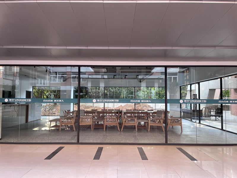 林风善境以林学与风景园林学院报告厅西北侧、与昭阳湖院士广场遥相呼应的圆弧形善境花园为主体,该主体于2022年完工,延伸至林学与风景园林院楼内的“师生茶座”、现代化装备的127大报告厅、院楼屏风和院楼中庭,整体面积近300平方米,是林学与风景园林学院基于“营山、营林、营境”的专业理念而营造的空间布局别致、名花异草荟萃、自然风景宜人、文化蕴藏盈溢的人文生态园区。其中,善境花园由不同组团花境进行分割,花团锦簇、曲径通幽,众多华南特色品种植物搭配协调,营造亲近自然的环境氛围,既呈现出了植物自然组合的群体美,也展现了林风学子优秀的植物配置与景观设计能力。林学与风景园林学院中庭前壁赫然醒目的两行鎏金大字“营山营林,树木树人”是由徐燕千教授题句、书法家梁鼎光所书的作品;其彰显的理念和价值,正是沈鹏飞院士、陈焕镛院士、侯过教授、蒋英教授等一代代林学家、林业教育家和罗彤鉴教授、王绍增教授等知名园林专家所毕生耕耘和追求的,并与新时代习近平总书记提出的“绿水青山就是金山银山”跨时空呼应,闪烁生辉。“林风善境”不仅是师生学术文化交流、观赏游览的优美环境,还是广东省自然教育基地开展科普教育以及组织亲近自然活动的重要场所。
