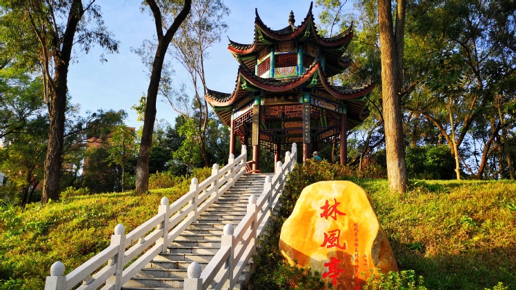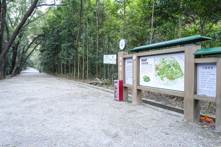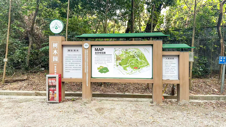 树木园(长岗山保护区)建于1972年,经过几十年的栽种培育,现在已经成为集教学科研实验考察多功能于一身的园区。树木园占地面积约150亩,是广东省高校中占地面积最大的校内园林;园内有1200多种植物种类,其中有60多种濒危植物和珍稀植物,包括金花茶、水松、蝴蝶果、青皮、坡垒等。根据美国哈佛大学胡秀英博士的倡导,华农于1986年率先开辟了在全国高校中罕见的校园里的“小鼎湖”——长岗山保护区。我校10多门课程都在植物园内进行现场教学和实践,校内教师利用它进行珍稀植物研究保护和物候观察,国内其他高校,甚至新西兰、澳大利亚高校和科研机构都慕名前来进行科研考察。树木园正门西侧有一亭子——林风亭,于2018年9月,由学校林学与风景园林学院校友捐建。