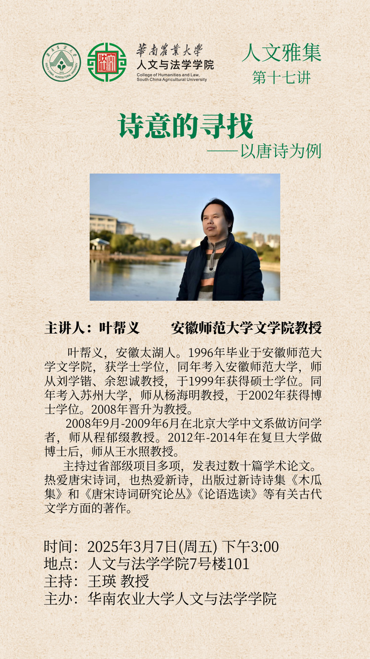 人文雅集第十七讲:诗意的寻找——以唐诗为例