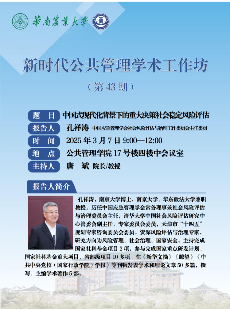 新时代公共管理学术工作坊(第43期):中国式现代化背景下的重大决策社会稳定风险评估