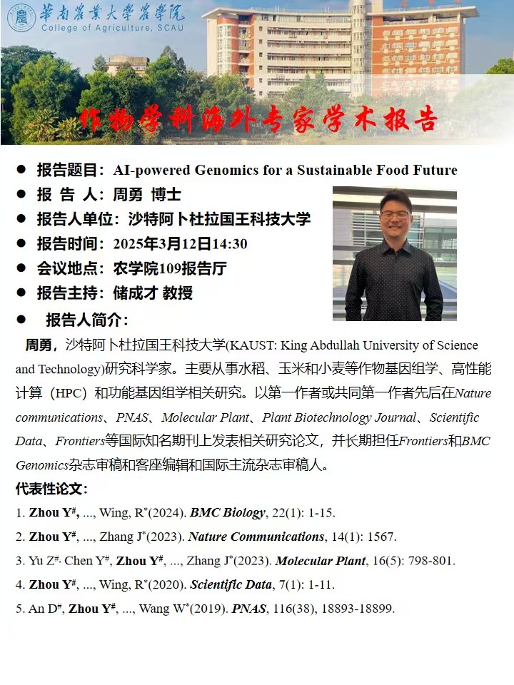 作物学科海外专家学术报告--AI-powered Genomics for a Sustainable Food Future