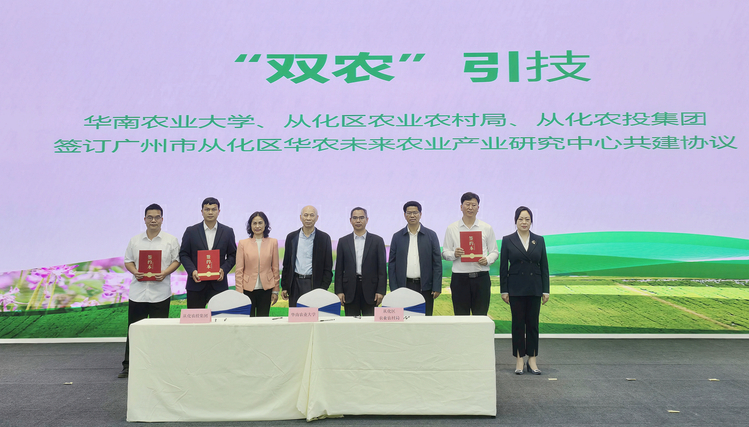 会上,我校与从化区农业农村局和农业投资集团三方共同签订了共建“广州市从化区华农未来农业产业研究中心”协议。