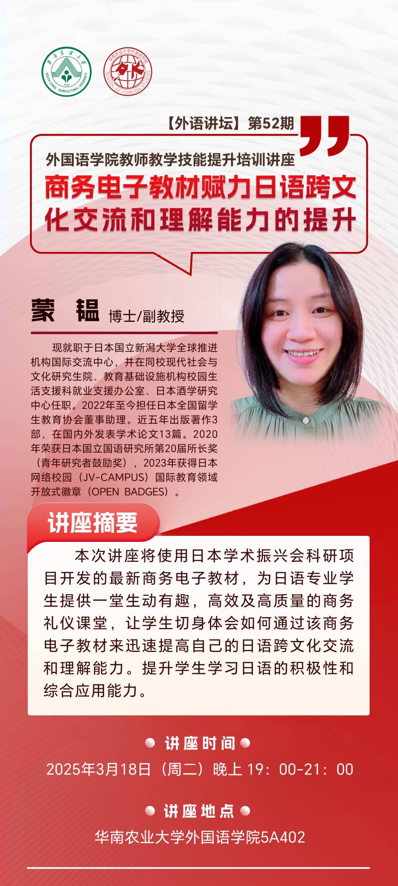 【外语讲坛】第52期:商务电子教材赋力日语跨文化交流和理解能力的提升