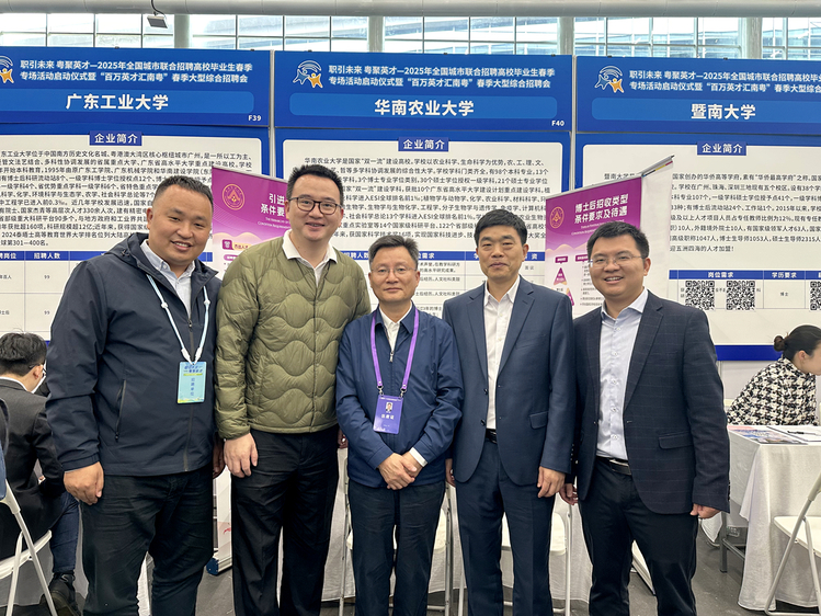 3月16日,由人力资源和社会保障部、教育部和广东省委、省政府联合主办的2025年全国城市联合招聘高校毕业生春季专场活动启动仪式暨“百万英才汇南粤”春季大型综合招聘会在广州举行。华农积极参会并面向全球招聘高层次人才和博士后,副校长温小波出席启动仪式。