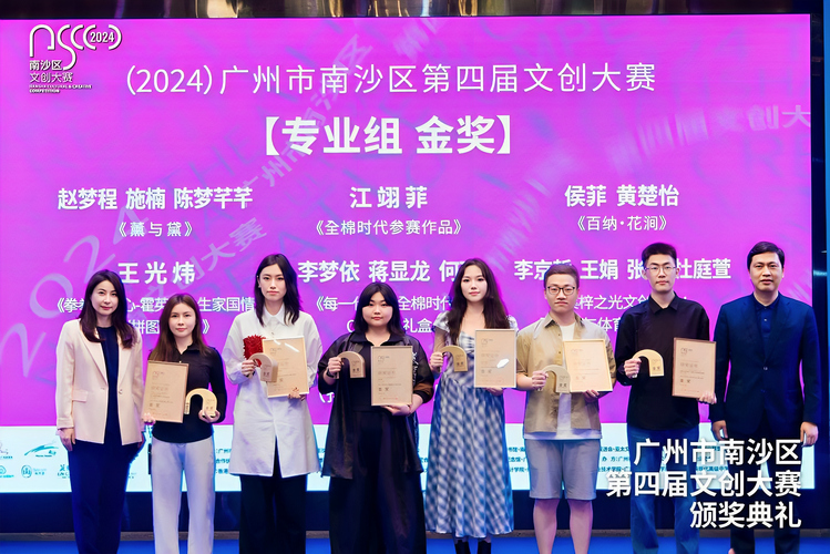 其中,2022级艺术设计专业研究生侯菲团队作品《百纳·花涧》与2023级艺术设计专业研究生赵梦程团队作品《薰与黛》均斩获专业组金奖,2022级艺术设计专业研究生黄楚怡团队凭借作品《暗香盈袖》摘得专业组铜奖及最佳人气奖,甘建业、王子萱团队作品入围百强。南沙区委常委、宣传部部长欧阳健华,南沙文化会副会长郭晶晶等嘉宾为获奖团队颁奖,并对作品的市场转化潜力给予高度评价。
