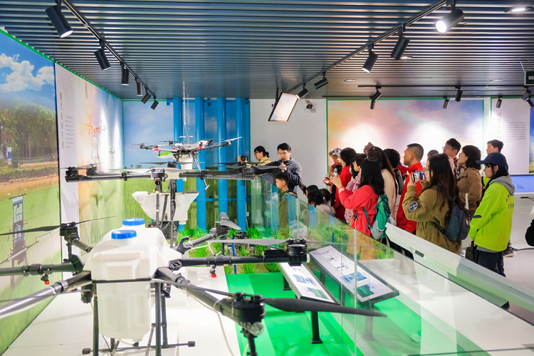 参观无人农场创新基地水稻机械化博物馆