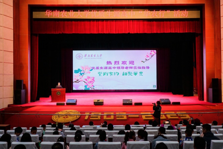 3月16日、3月23日,学校举办了“紫荆有约,相聚华农”——优质生源高中老师“华农行”活动。来自华南师范大学附属中学、广东实验中学、广州执信中学、广东广雅中学、广州第二中学、广州大学附属中学、深圳红岭中学、深圳科学高中、佛山第一中学、佛山南海中学等广州、深圳、佛山的43所优质生源高中约700名中学校长、老师和学生参加了活动。副校长温小波出席活动并致辞。