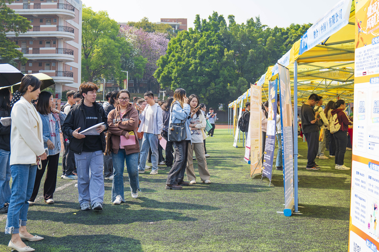 春满岭南,英才荟萃。3月22日,由广东省食品学会、华南农业大学食品学院、华南理工大学食品科学与工程学院联合举办的“2025年春季广东省食品行业高校毕业生供需见面会”在华农举行。本次供需见面会积极响应“百万英才汇南粤”行动计划,共吸引省内外110余家企业参与,提供岗位超2000个,涵盖食品研发、生产管理、质量检测等领域。来自省内40余所高校的3000余名毕业生到场竞聘,现场人头攒动,气氛热烈。校党委副书记陈磊到现场指导工作。