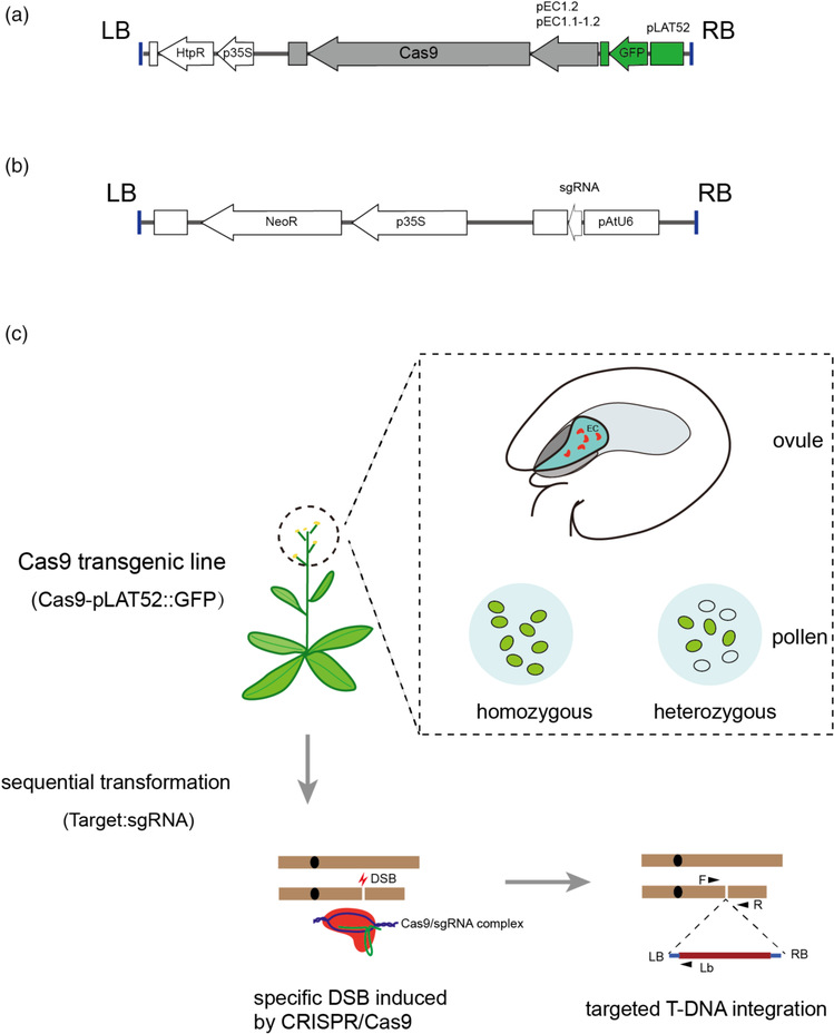 图1. CRISPR/Cas9介导的T-DNA定点插入