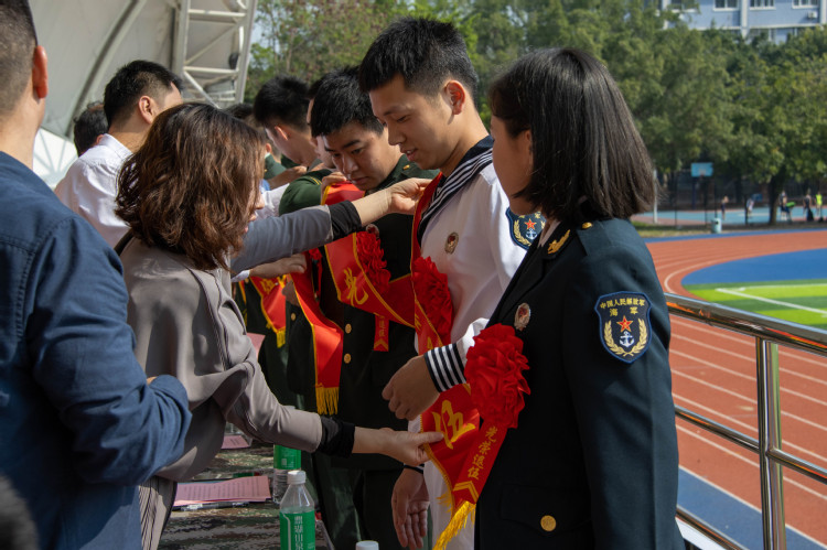 相关部门、学院负责人和辅导员,教官团校友联谊会理事和校友代表,兄弟院校的师生代表等参加开幕式。