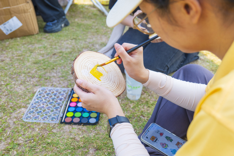 在绿意盎然、繁花似锦的大草坪上,20多个摊位带来了内容丰富、形式多样的趣味活动。除了绘画心理测试、一对一心理咨询等常见的心理类活动,活动还开设“农耕心园”专区,将定制种子卡、压花插花、盆栽种植、昆虫科普、宠物连连看等华农特色十足的趣味体验与心理健康主题相结合,此外还有心理知识扭蛋机、“用笑容与春天合影”、“小熊拥抱”等特别内容,人气颇旺。