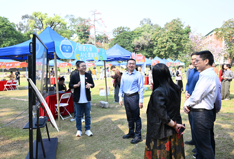 充满科技感的AI心理辅导,疗愈的压花插花、DIY香囊体验,有趣的“昆虫性格测试”,还有温暖的“熊抱”……3月25日是“善爱我”心理健康日,华南农业大学2025年“心育沃土,律动青春”心理健康节正式开幕。作为心理健康节首场大型活动,“耕耘心灵·绿意成长”心理主题公园活动在竹铭草海举行,带来一场特别的心灵探索之旅。校党委副书记陈磊到场参加并听取相关工作情况汇报。据介绍,这也是心理主题公园首次由多个学院联合、面向全校开展,是自2015年创办以来规模最大的一次。