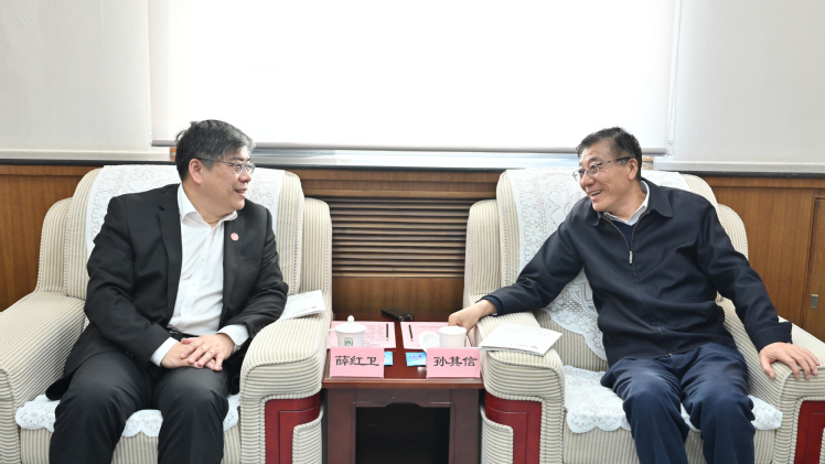 在中国农业大学,薛红卫与中国农业大学校长孙其信会面,双方就深入推进两校合作进行座谈。孙其信表示,两校渊源深厚,交流紧密。面向“十五五”规划,中国农大启动“学科高质量发展规划年”,面向2035进一步谋划学科建设与战略布局调整。在加快推进新工科、新医科、新农科、新文科“四新”2.0建设的背景下,大力推动涉农学科专业内涵建设和深化学科交叉融合。聚焦教育强国建设,谋划高等农林教育交流平台建设,推进教育科技人才一体化建设。希望双方进一步创新合作机制和领域,推动两校合作结出更多丰硕成果。