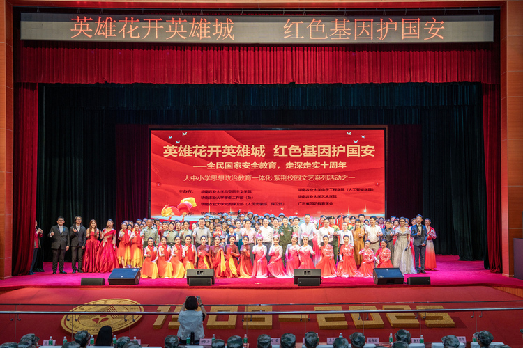 4月12日,在第十个全民国家安全教育日即将到来之际,马克思主义学院联合广东省国防教育学会和学校党委学生工作部、党委保卫部、电子工程学院(人工智能学院)、艺术学院共同举办“英雄花开英雄城 红色基因护国安——全民国家安全教育,走深走实十周年”主题文艺汇演活动。千余名师生齐聚丁颖礼堂,在红色文化熏陶中深化国家安全教育。