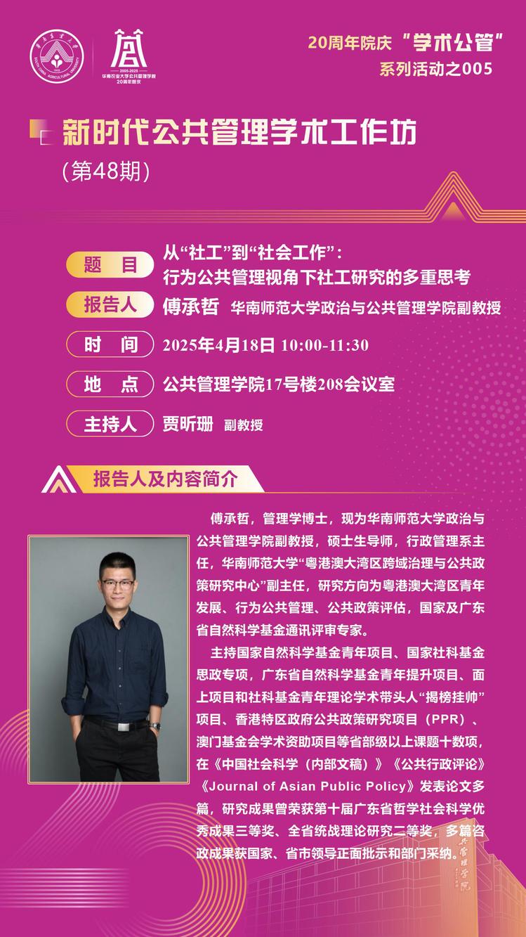 公共管理学院20周年院庆“学术公管”系列活动之005:新时代公共管理学术工作坊(第48期):从“社工”到“社会工作”: 行为公共管理视角下社工研究的多重思考