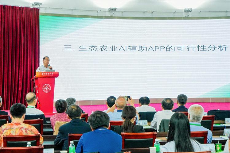 骆世明以“实施生态农业的AI辅助途径构想”为题作报告,提出结合AI辅助实施生态农业的系统构想与整体框架体系,倡导加大传统农业生态学理念与现代科技深度融合的创新研究与实践应用力度,助力我国农业绿色转型与高质量发展。