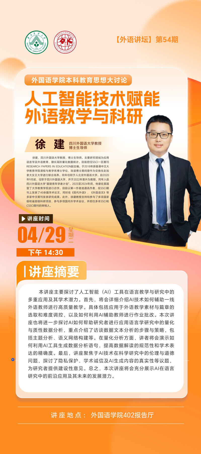 【外语讲坛】第53期:AI赋能大学英语教学改革的路径与机制