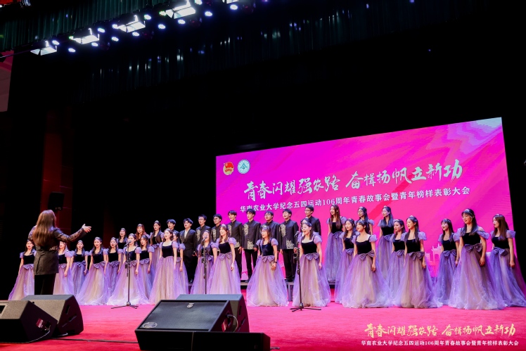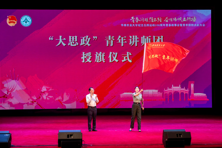 青春闪耀强农路,奋楫扬帆立新功。4月28日晚,学校在丁颖礼堂举行纪念五四运动106周年青春故事会暨青年榜样表彰大会,表彰过去一年表现突出的青年集体和个人,勉励华农青年积极向“身边榜样”学习,矢志强农兴农,争当时代先锋。校党委书记李凤亮,党委副书记丁红星、陈磊,副校长钟强,国家科技进步奖、全国五一劳动奖章获得者、动物科学学院教授吴珍芳出席大会。