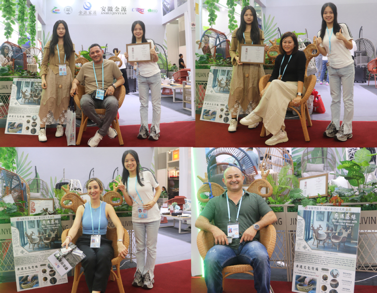 展会现场,来自30余个国家的采购商现场感受座椅天然材质的温度、端详传统工艺的精妙,更有国际友人亲身体验后,盛赞这件承载着千年竹编智慧的艺术品:“这是东方美学与实用主义的完美结合!”