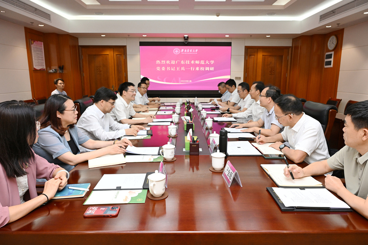 4月30日,广东技术师范大学党委书记王兵一行来校交流。校党委书记李凤亮接待来宾并座谈,党委副书记丁红星参加座谈会。