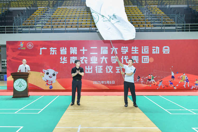 5月6日至5月29日,广东省第十二届大学生运动会(以下简称“省大运会”)在广州举行。为进一步凝心聚力、鼓舞士气,5月6日中午,我校在体育馆举行华南农业大学代表团出征仪式,副校长、省大运会华南农业大学代表团团长钟强出席仪式并作动员讲话。
