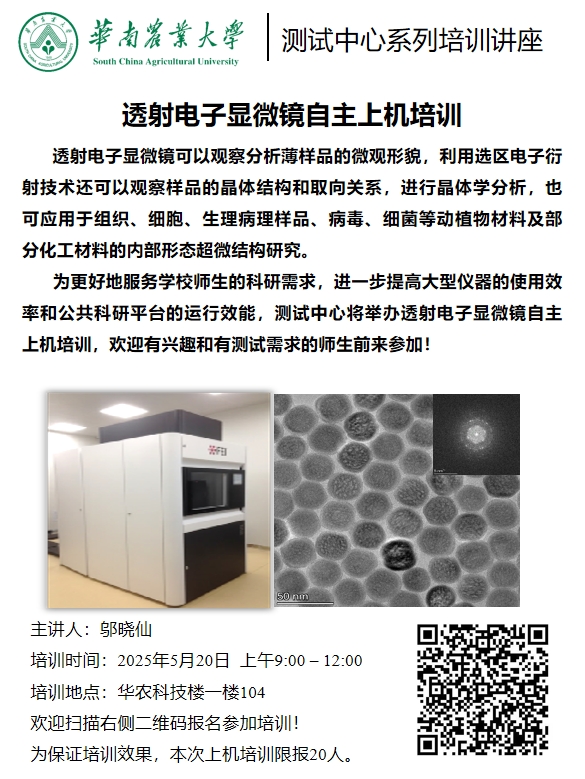 测试中心系列培训讲座(2025年第3期):透射电子显微镜自主上机培训