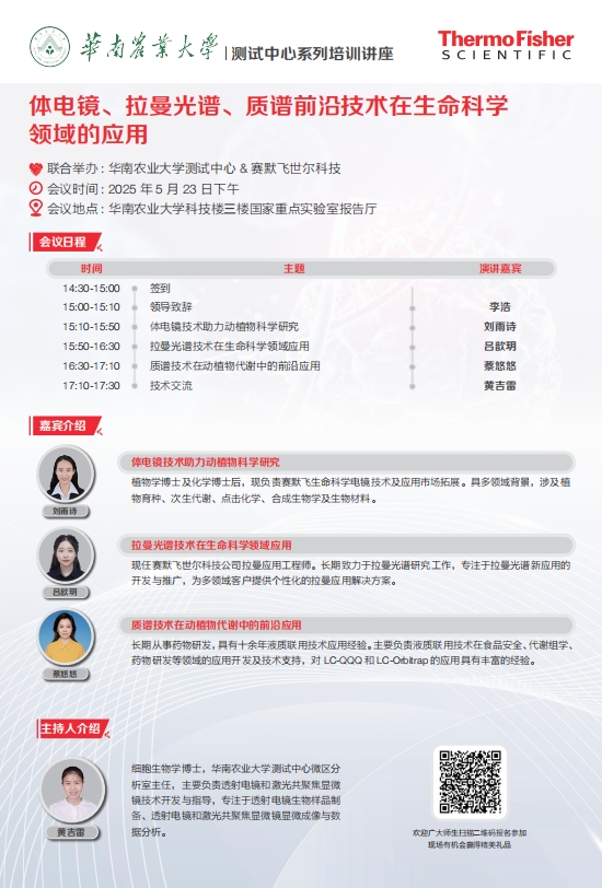 测试中心系列培训讲座(2025年第4期):体电镜、拉曼光谱、质谱前沿技术在生命科学领域的应用