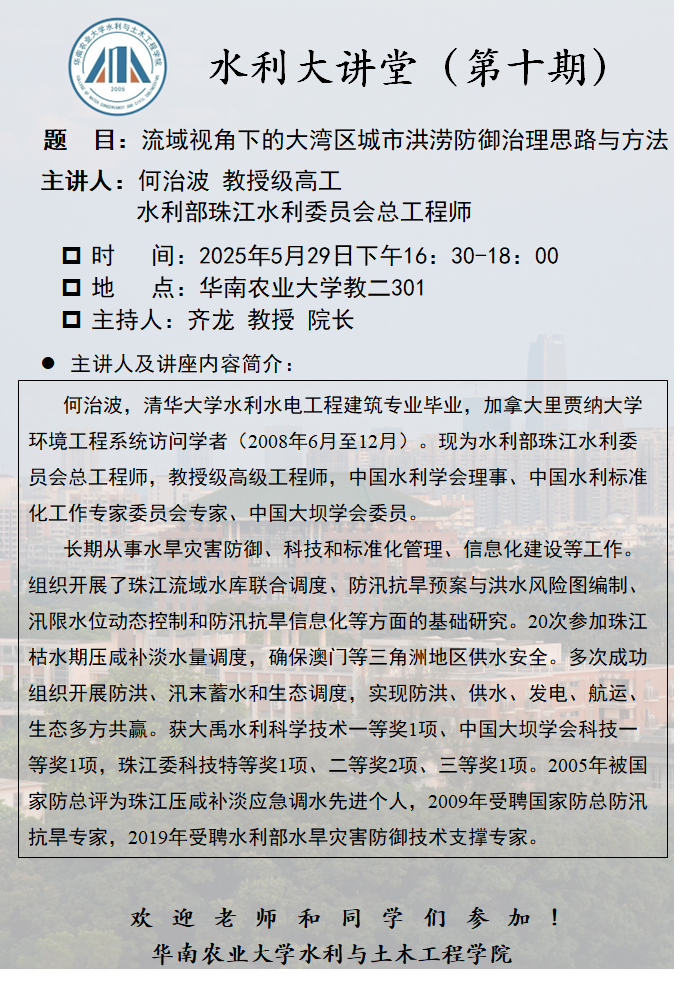 水利大讲堂(第10期):流域视角下的大湾区城市洪涝防御治理思路...