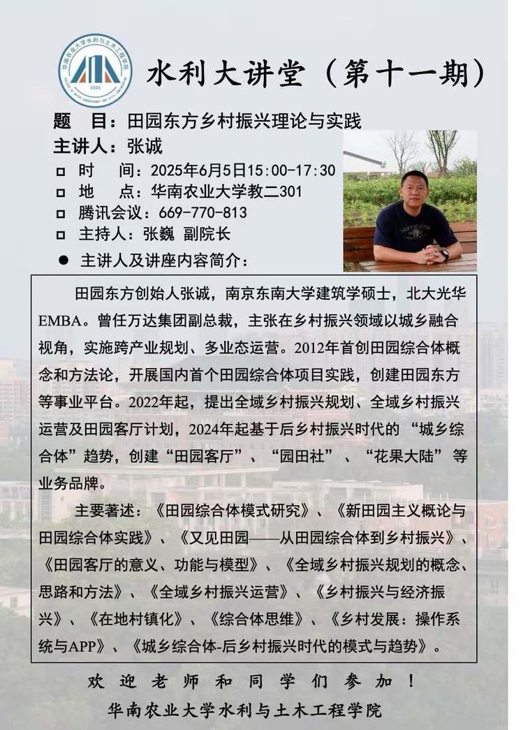 水利大讲堂(第12期):CHINA ROCK 2025 第三分会场——华南农业大...