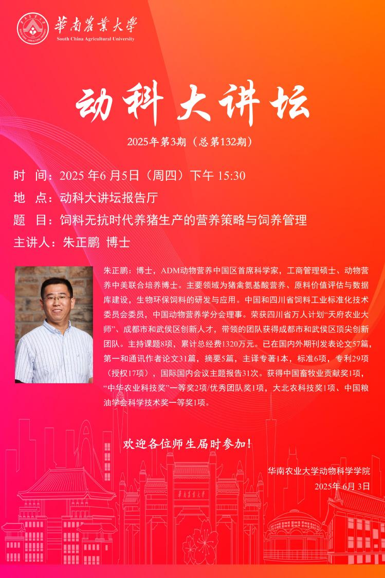 动科大讲坛(第132期):饲料无抗时代养猪生产的营养策略与饲养管理