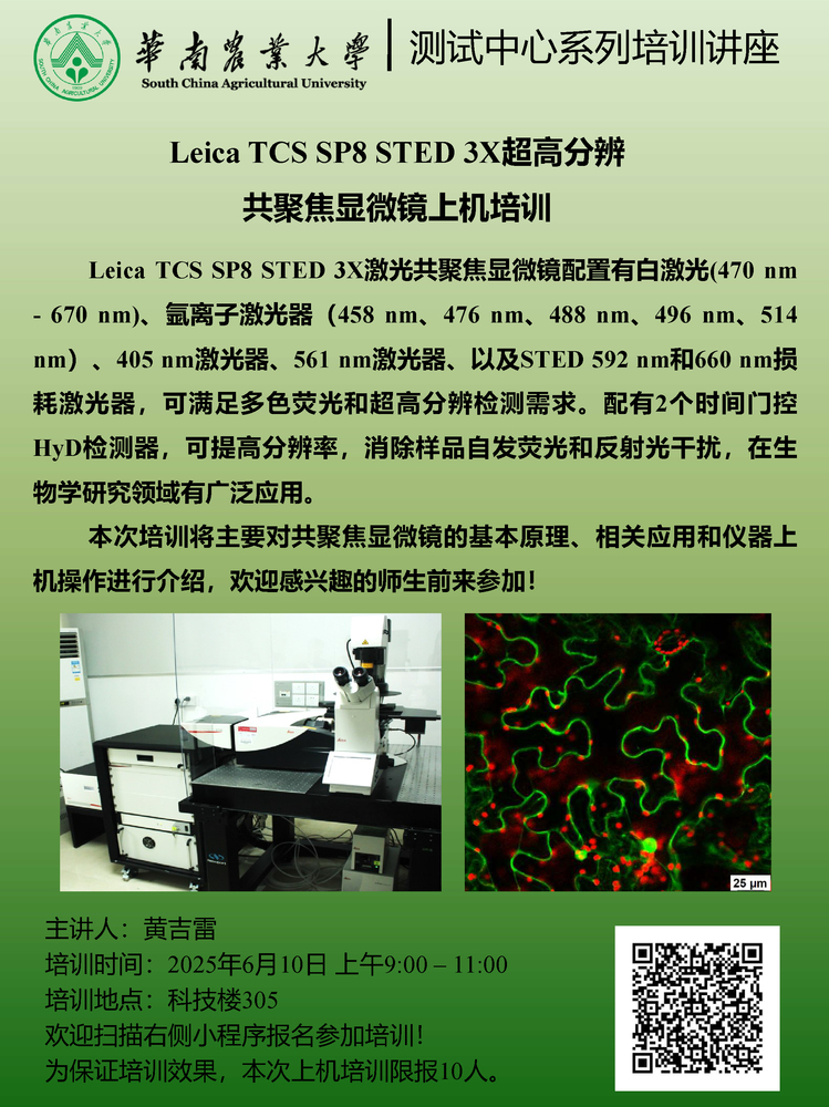 测试中心系列培训讲座(2025年第5期):Leica TCS SP8 STED 3X超高分辨共聚焦显微镜上机培训