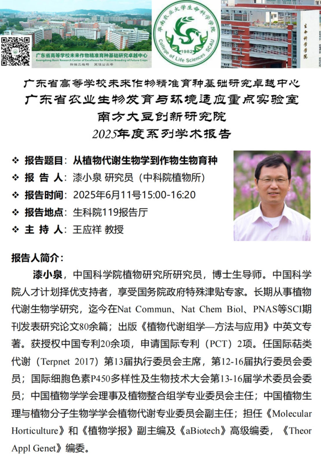 生命科学学院特邀报告——从植物代谢生物学到作物生物育种