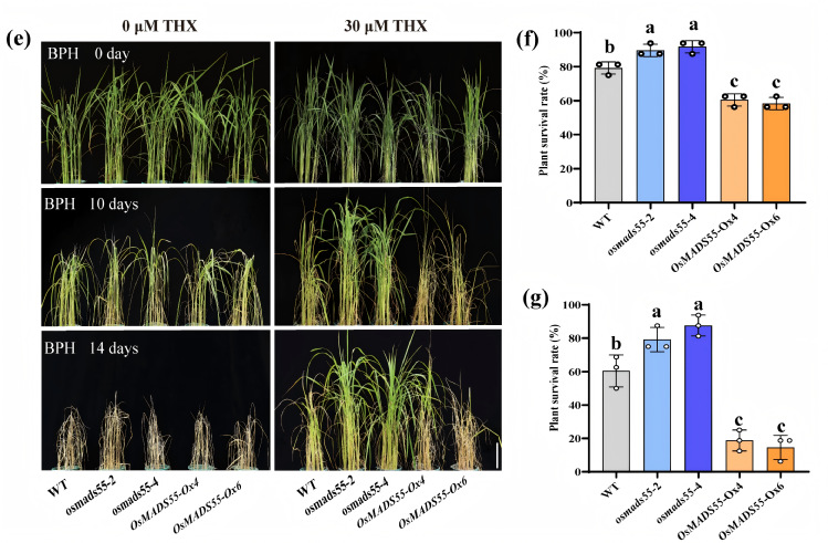 图2 OsMADS55基因植株吸收噻虫嗪后对稻飞虱的防治效果比较